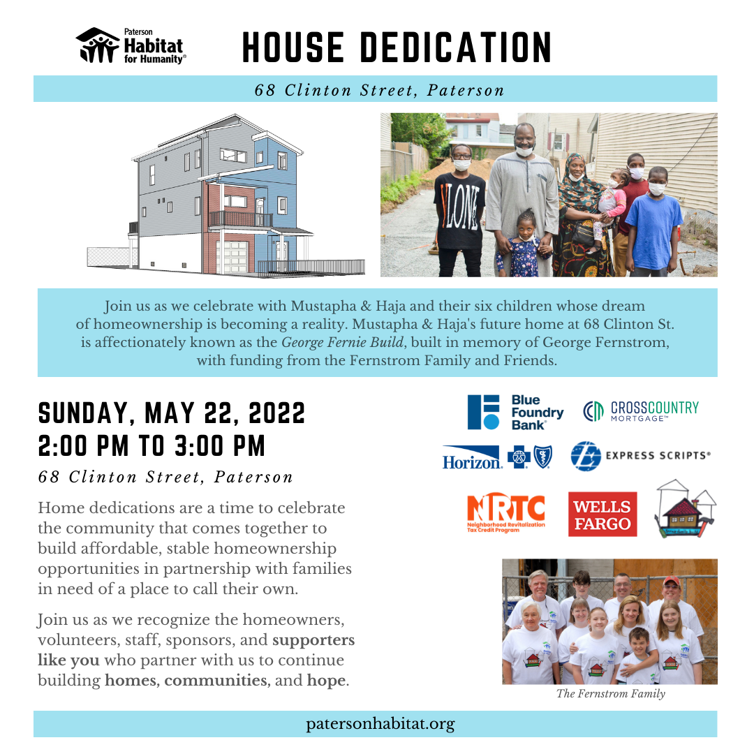 Dedication Celebration for FOUR Paterson Habitat homeowners families
